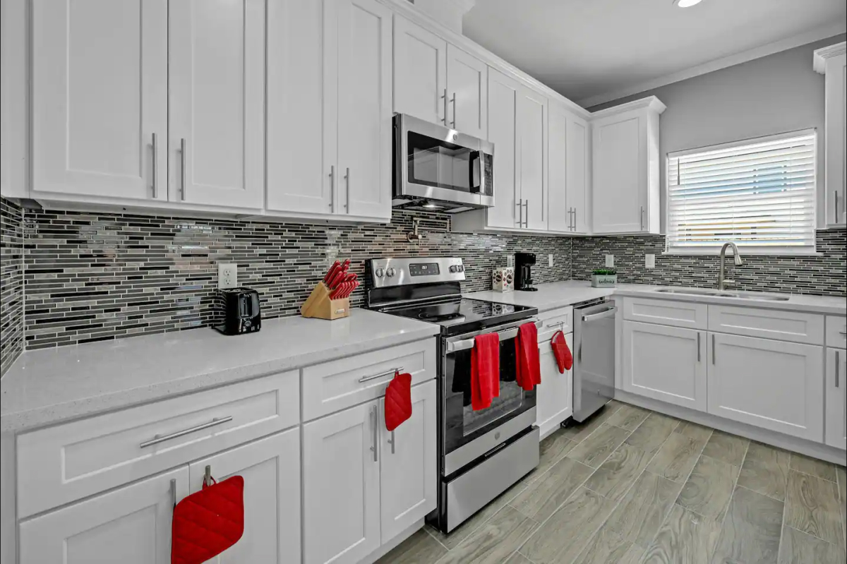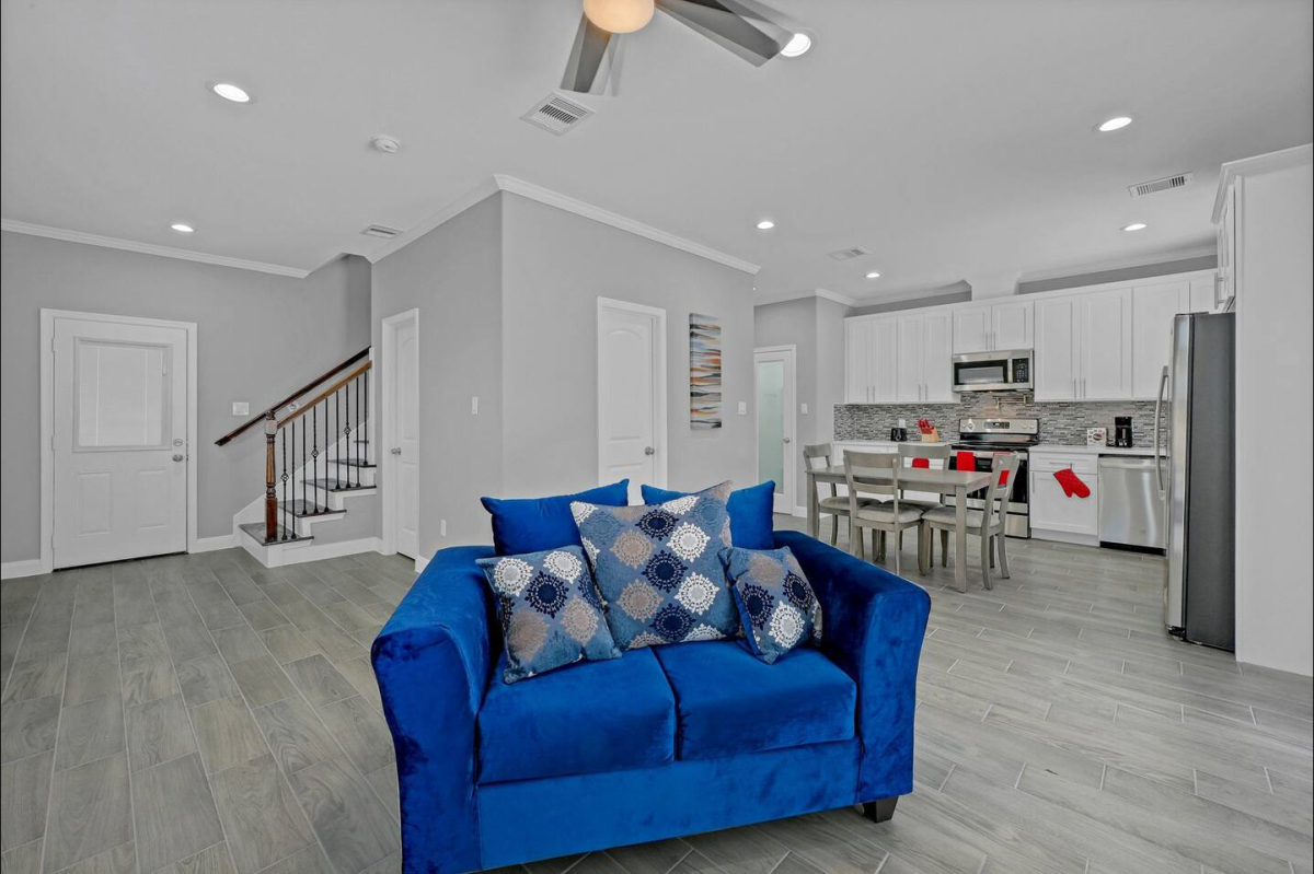 Enjoy a stylish experience at this centrally-located place. Grace Building Company presents a brand new construction duplex offering all of the latest in technology and amenities to make your stay at our property feel like you’ve never left home. Enjoy our private wrought iron gated entry, free on-site parking, smart lock technology for easy check-in or access for your visiting guests, free Direct-TV streaming Wi-Fi, a full kitchen, full laundry center, private backyard just to list a few.